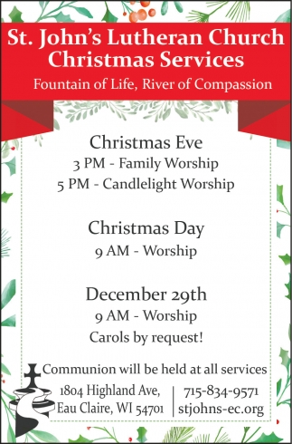 Ads for St. John's Lutheran Church in Eau Claire, WI