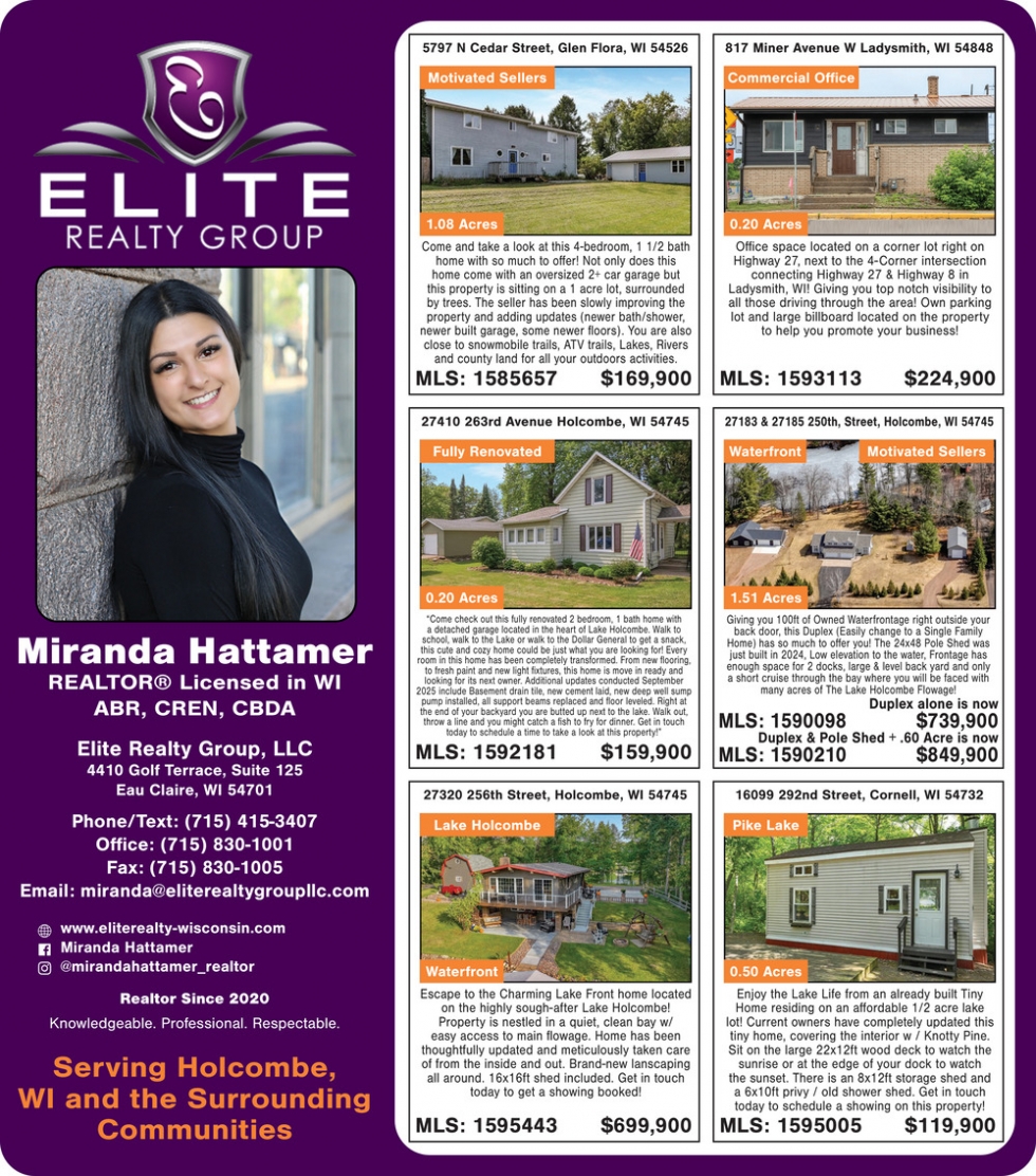 Oct 08, 2025. Miranda Hattamer - Elite Realty Group Real Estate Ads from Leader-Telegram