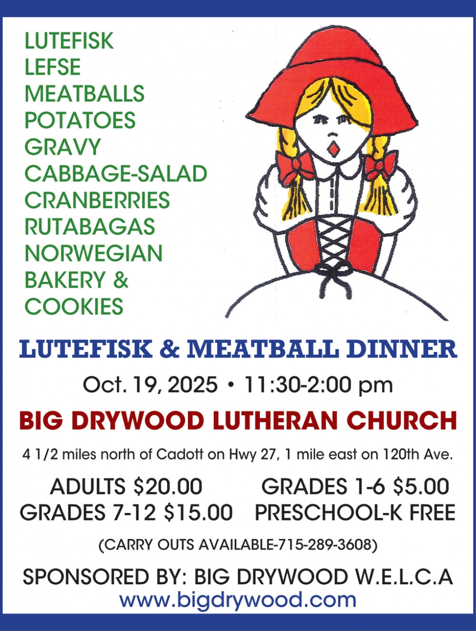 Oct 15, 2025. Big Drywood Lutheran Church Church Ads from Leader-Telegram