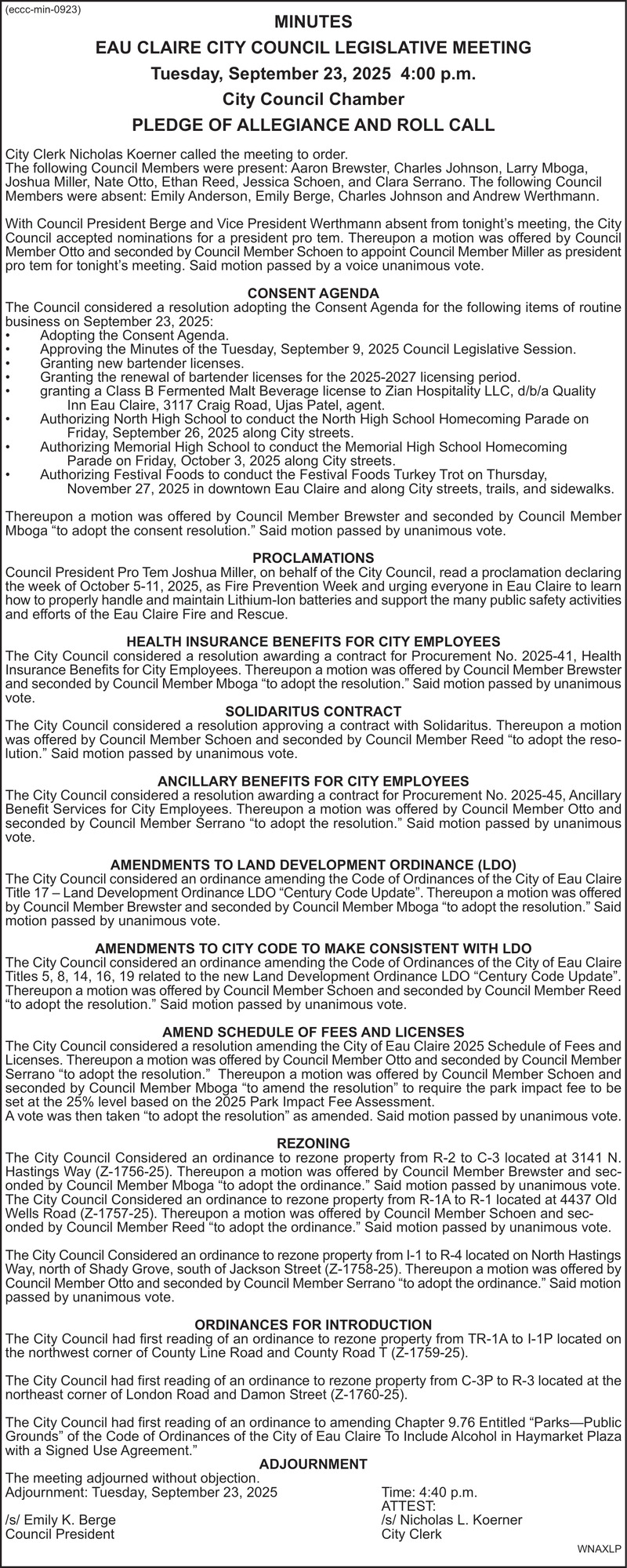 Oct 20, 2025. City of Eau Claire Notice Ads from Leader-Telegram