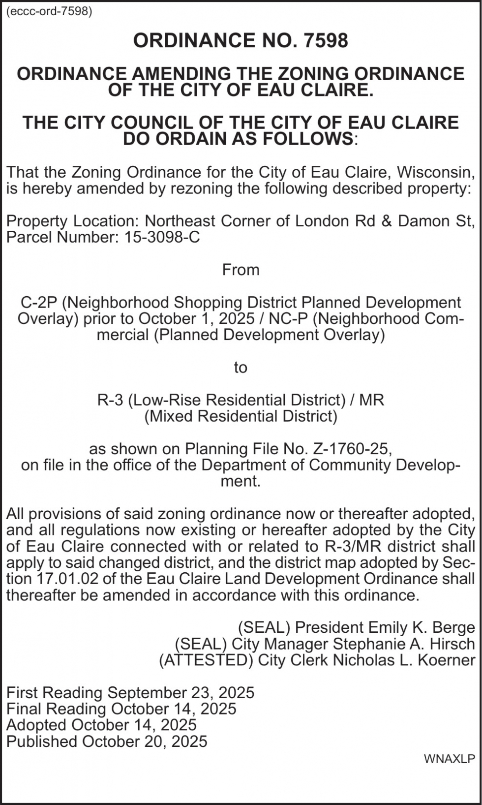 Oct 20, 2025. City of Eau Claire Notice Ads from Leader-Telegram