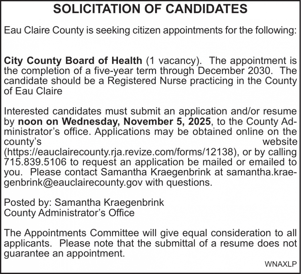 Oct 20, 2025. Eau Claire County Notice Ads from Leader-Telegram