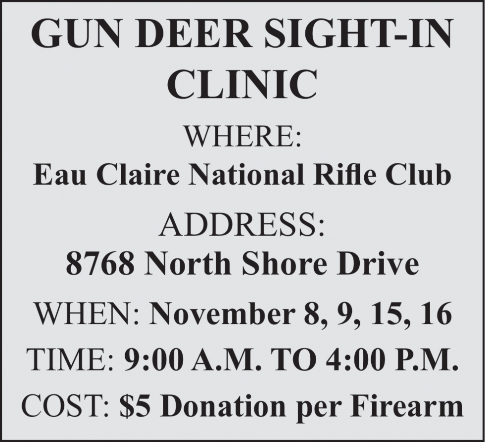 Oct 30, 2025. Gun Deer Sight-In Clinic At Eau Claire National Rifle Club Events Ads from Leader-Telegram
