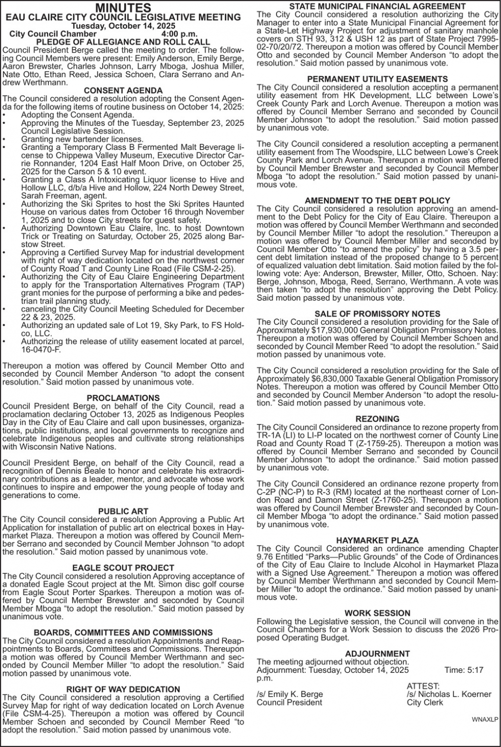 Nov 03, 2025. City of Eau Claire Notice Ads from Leader-Telegram