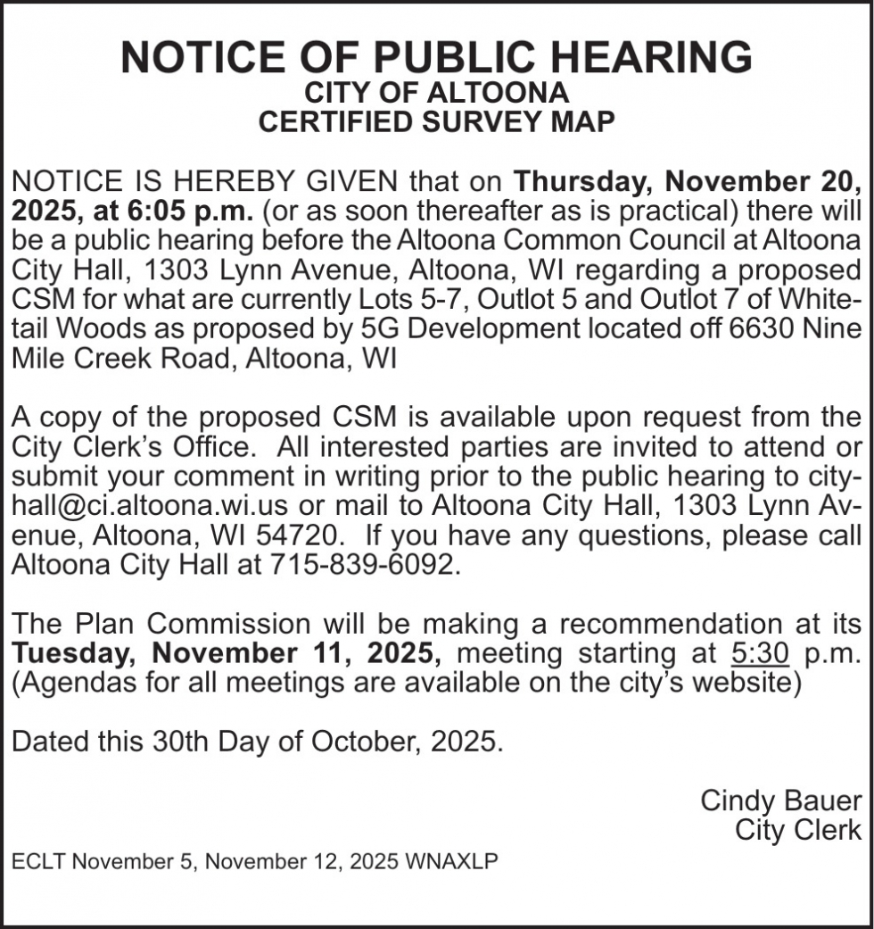 Nov 05, 2025. The City of Altoona Notice Ads from Leader-Telegram