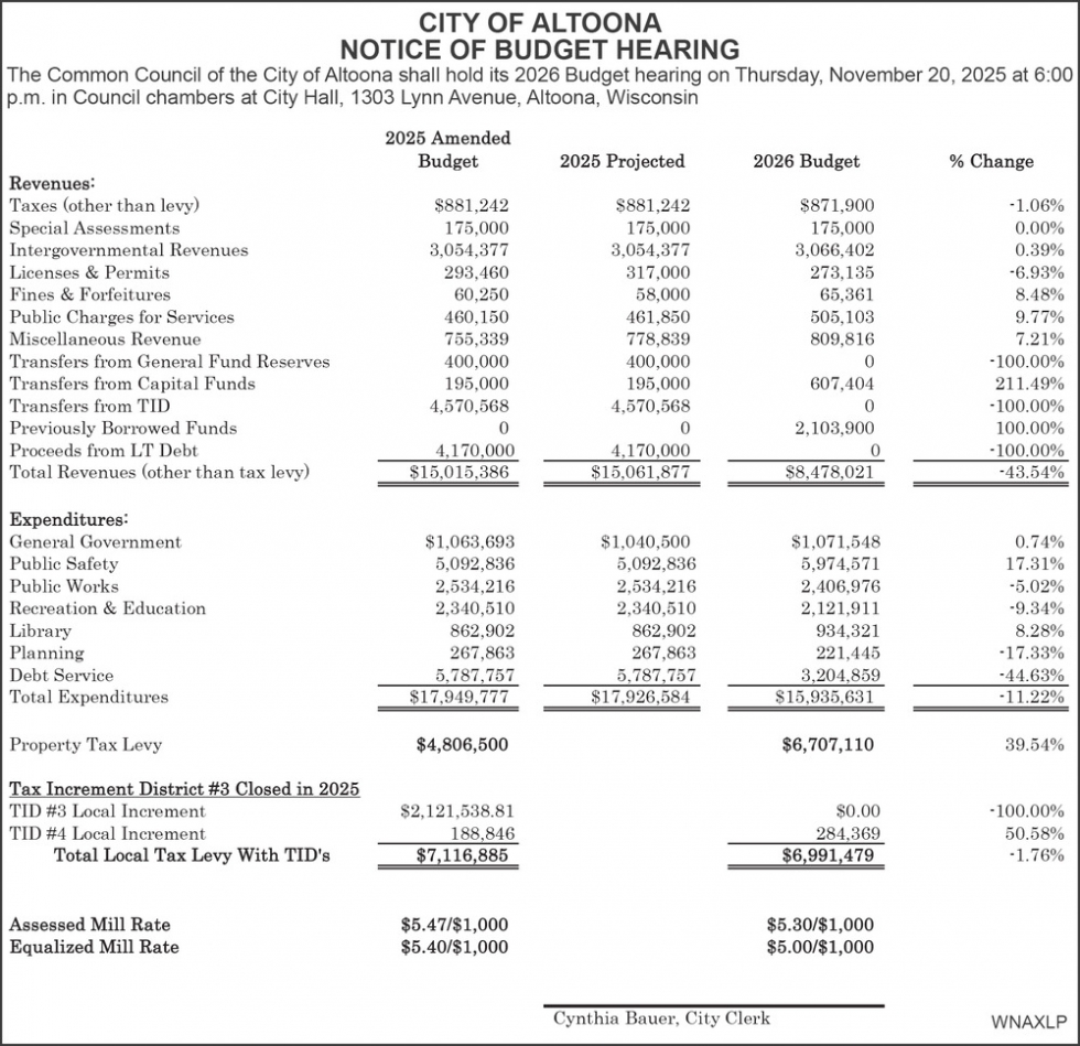 Nov 05, 2025. The City of Altoona Notice Ads from Leader-Telegram