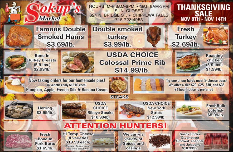 Nov 07, 2025. Sokup's Market Groceries & Markets Ads from Leader-Telegram