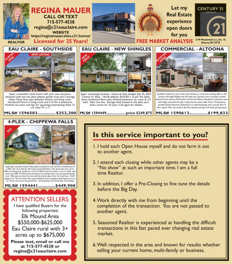 Nov 12, 2025. Regina Mauer - Century 21 Affiliated Real Estate Ads from Leader-Telegram