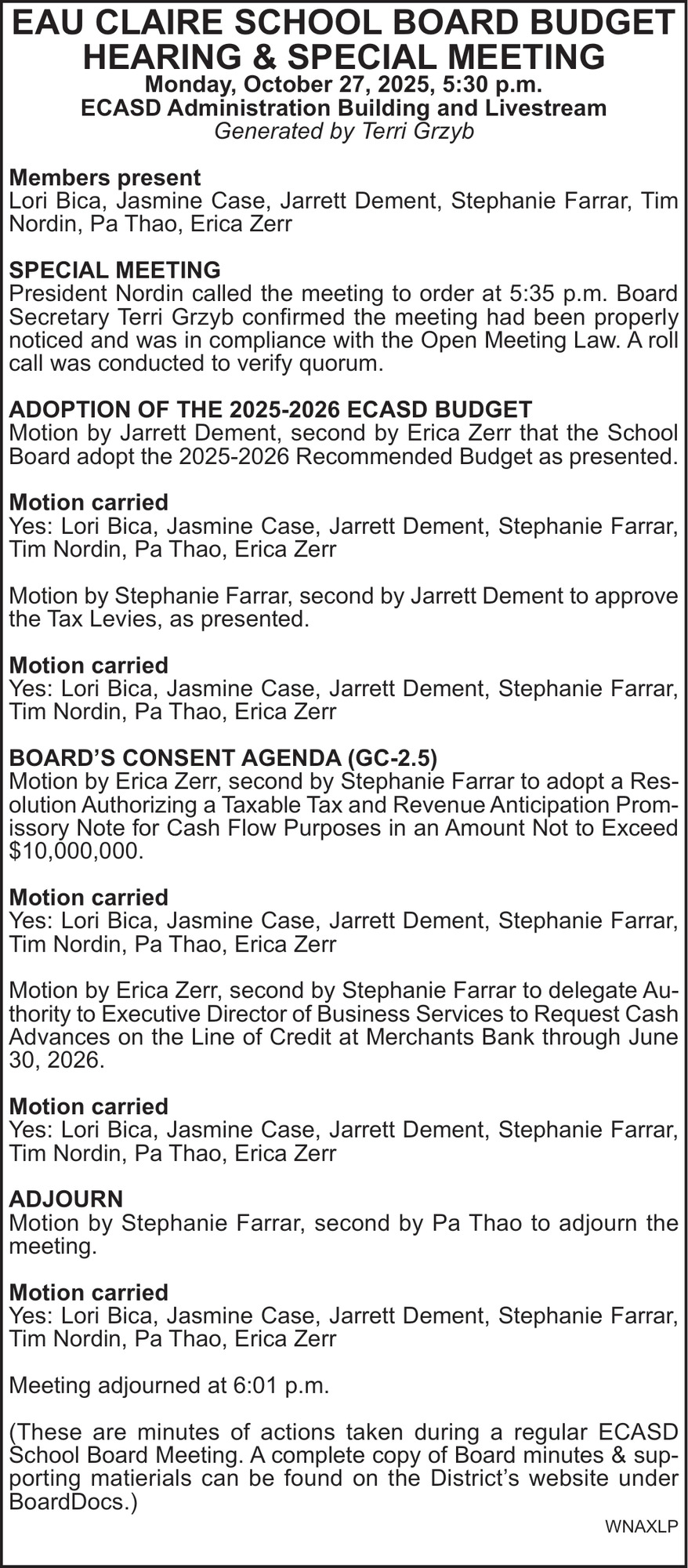 Nov 12, 2025. Eau Claire School Board Notice Ads from Leader-Telegram