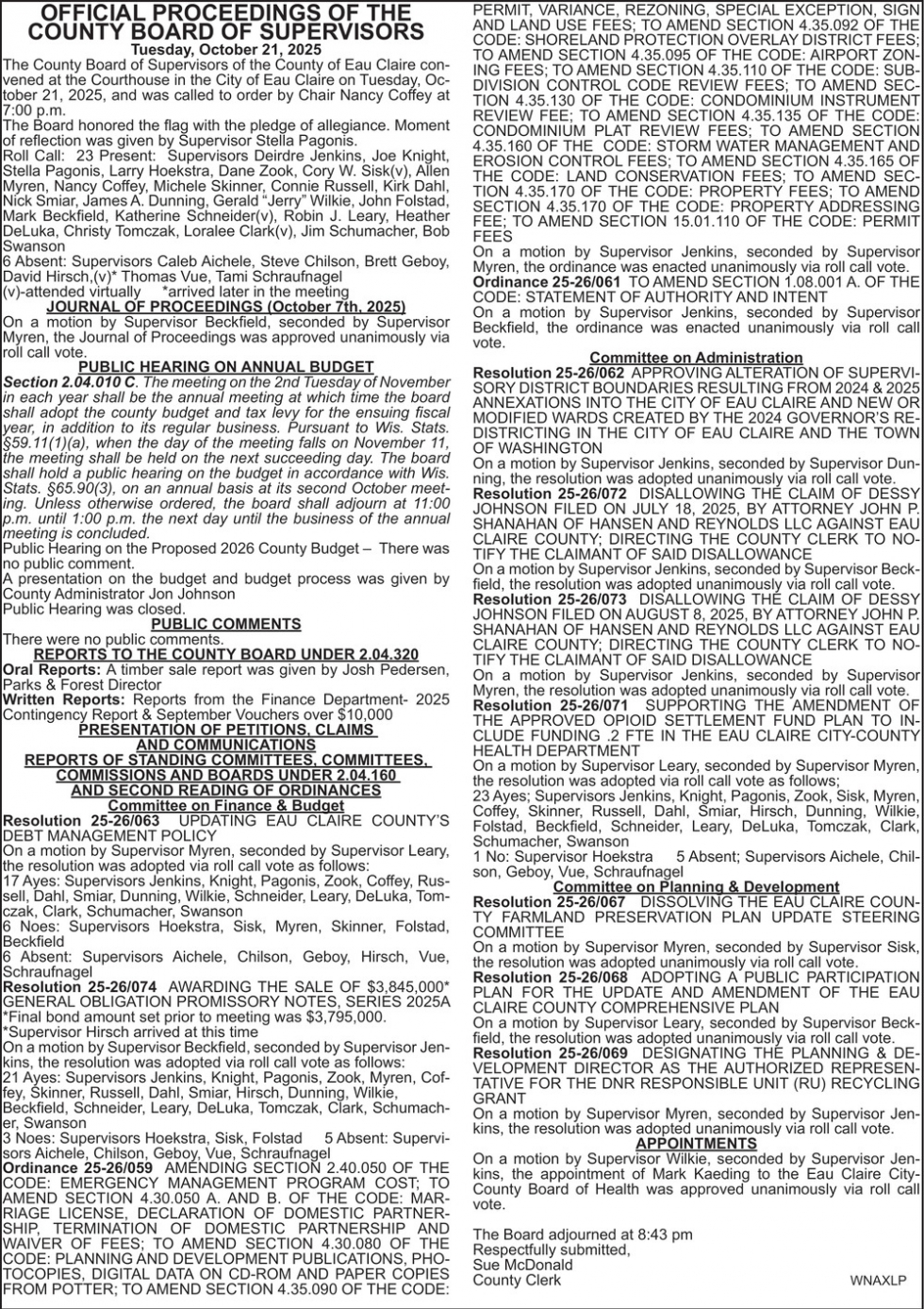 Nov 14, 2025. Eau Claire County Clerk Government Ads from Leader-Telegram