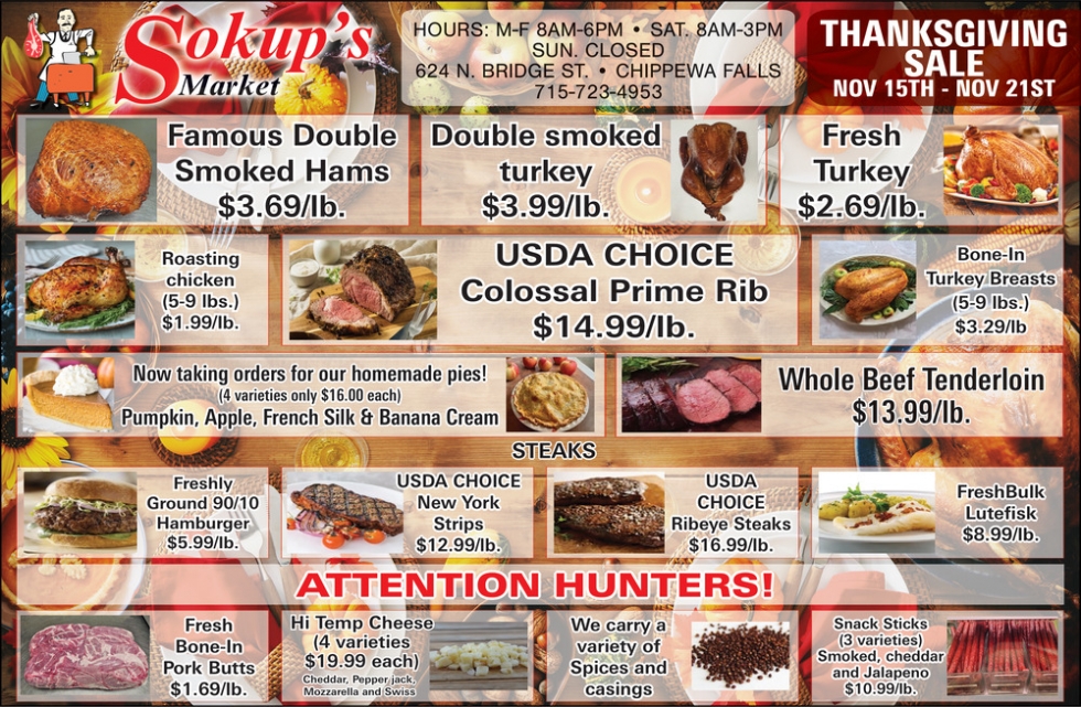 Nov 14, 2025. Sokup's Market Groceries & Markets Ads from Leader-Telegram