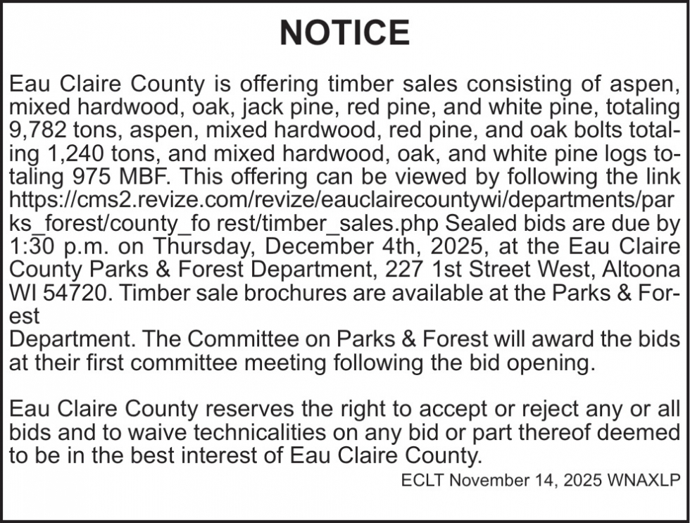 Nov 14, 2025. Eau Claire County Notice Ads from Leader-Telegram