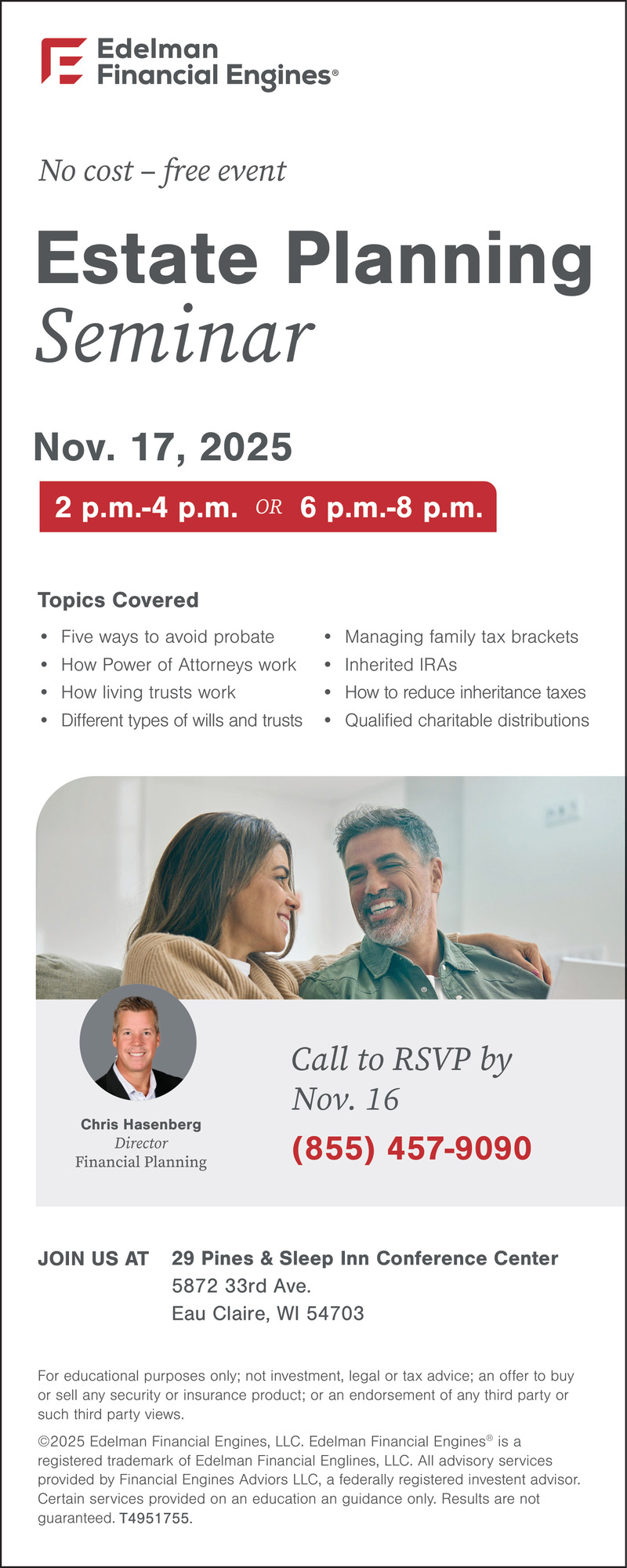 Nov 14, 2025. Estate Planning Seminar (November 17, 2025) Events Ads from Leader-Telegram