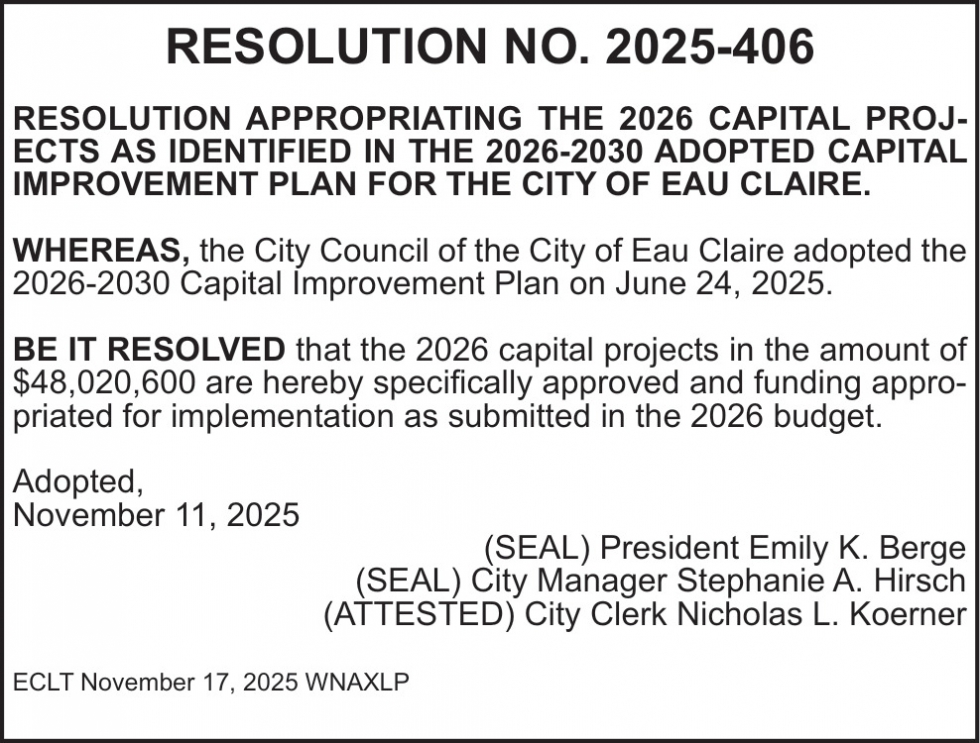 Nov 17, 2025. City of Eau Claire Notice Ads from Leader-Telegram