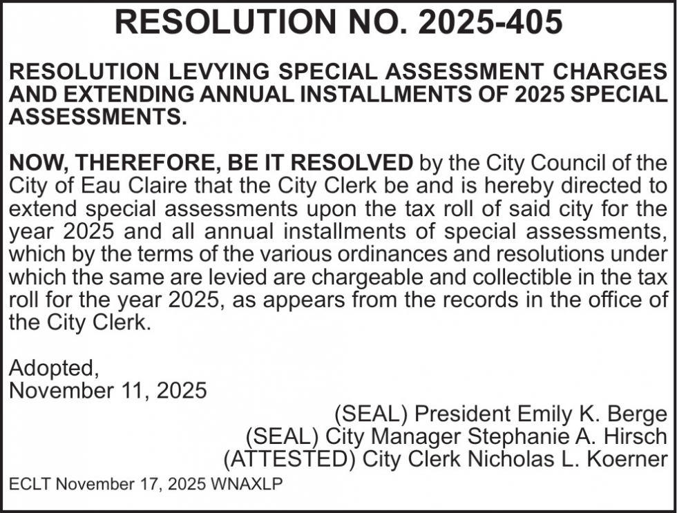 Nov 17, 2025. City of Eau Claire Notice Ads from Leader-Telegram