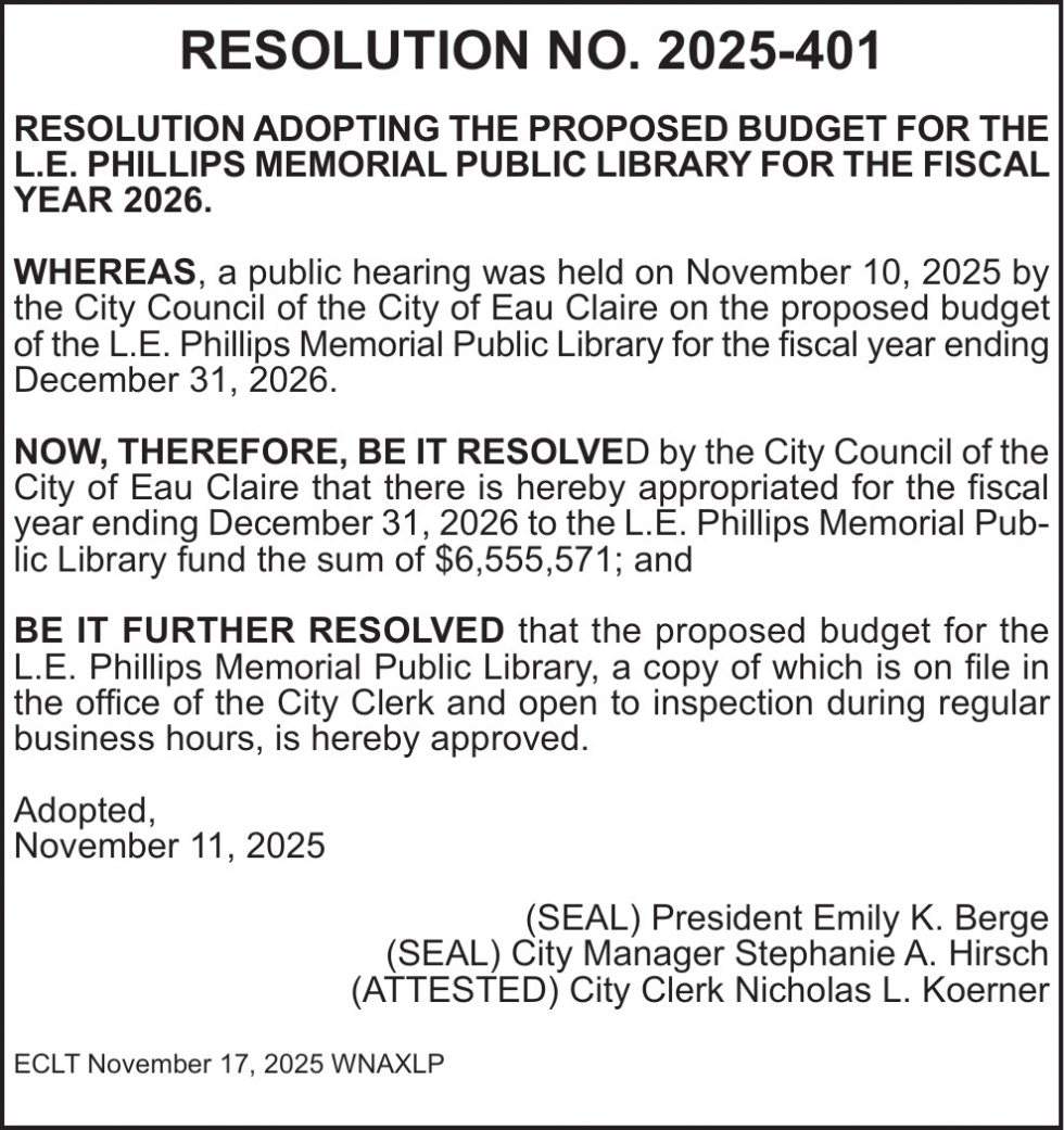 Nov 17, 2025. City of Eau Claire Notice Ads from Leader-Telegram
