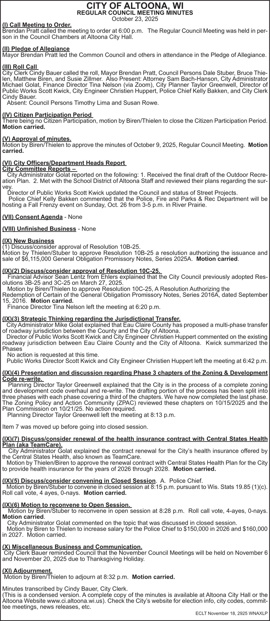 Nov 18, 2025. The City of Altoona Notice Ads from Leader-Telegram