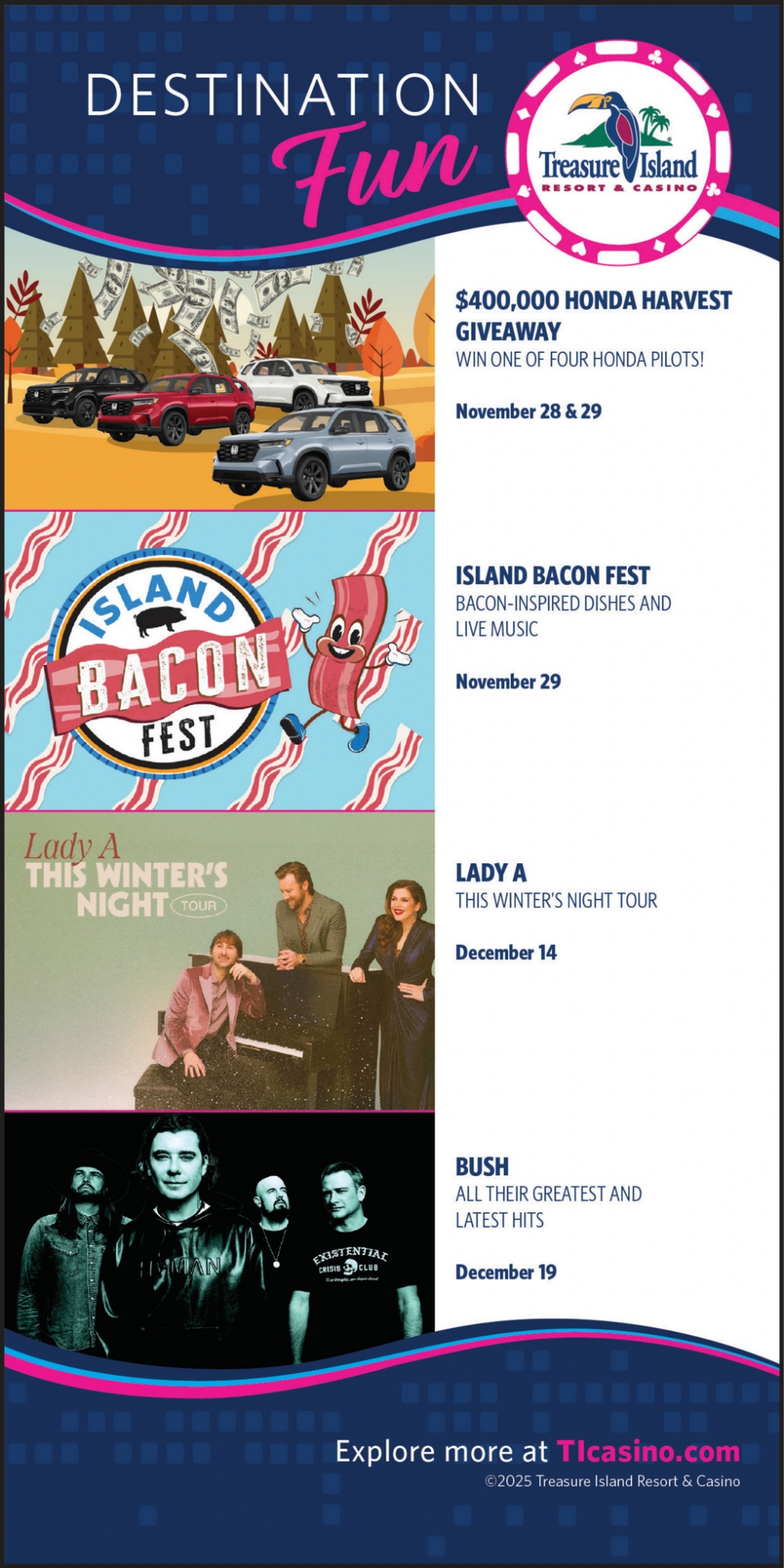 Nov 21, 2025. Treasure Island Resort & Casino Casino Ads from Leader-Telegram