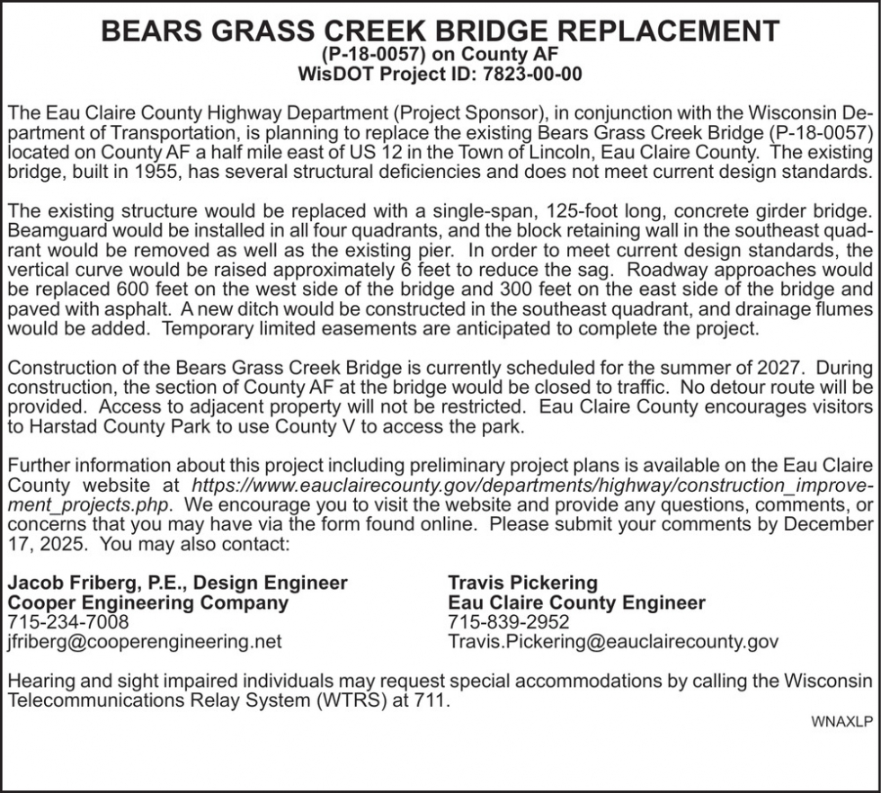 Dec 08, 2025. Eau Claire Highway Department Notice Ads from Leader-Telegram