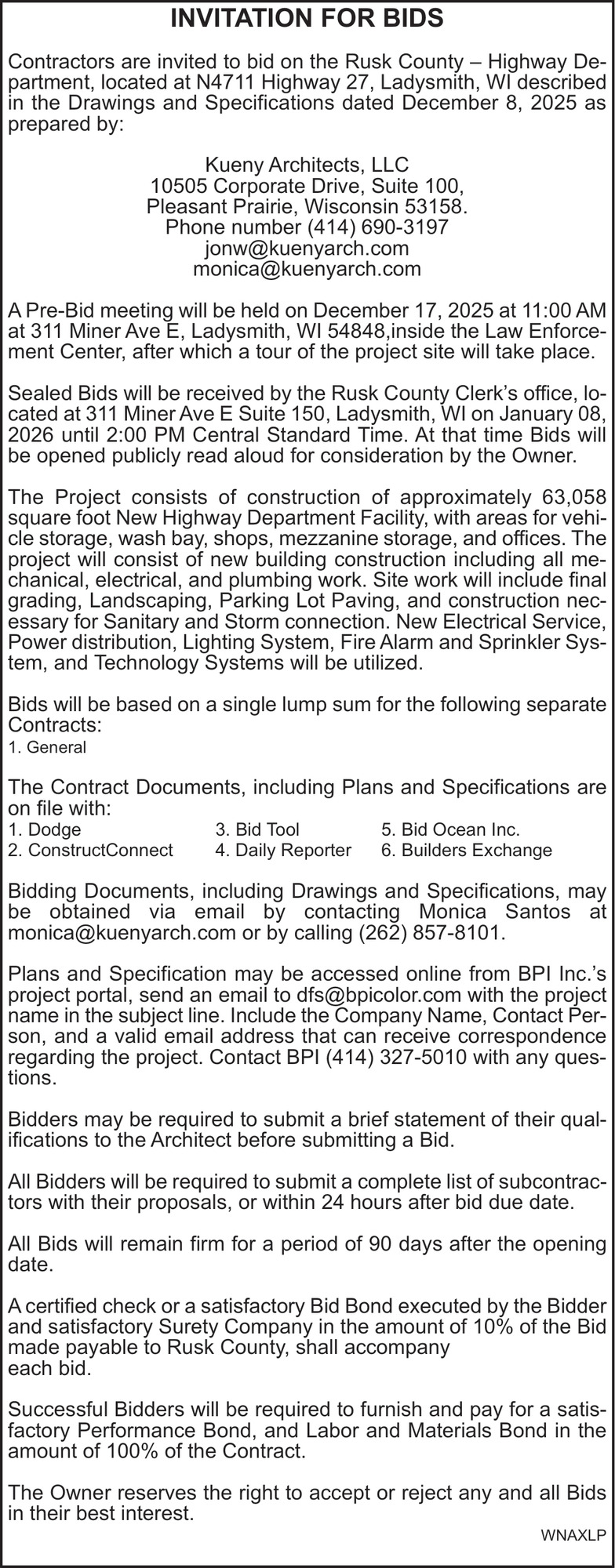 Dec 10, 2025. Rusk County Notice Ads from Leader-Telegram