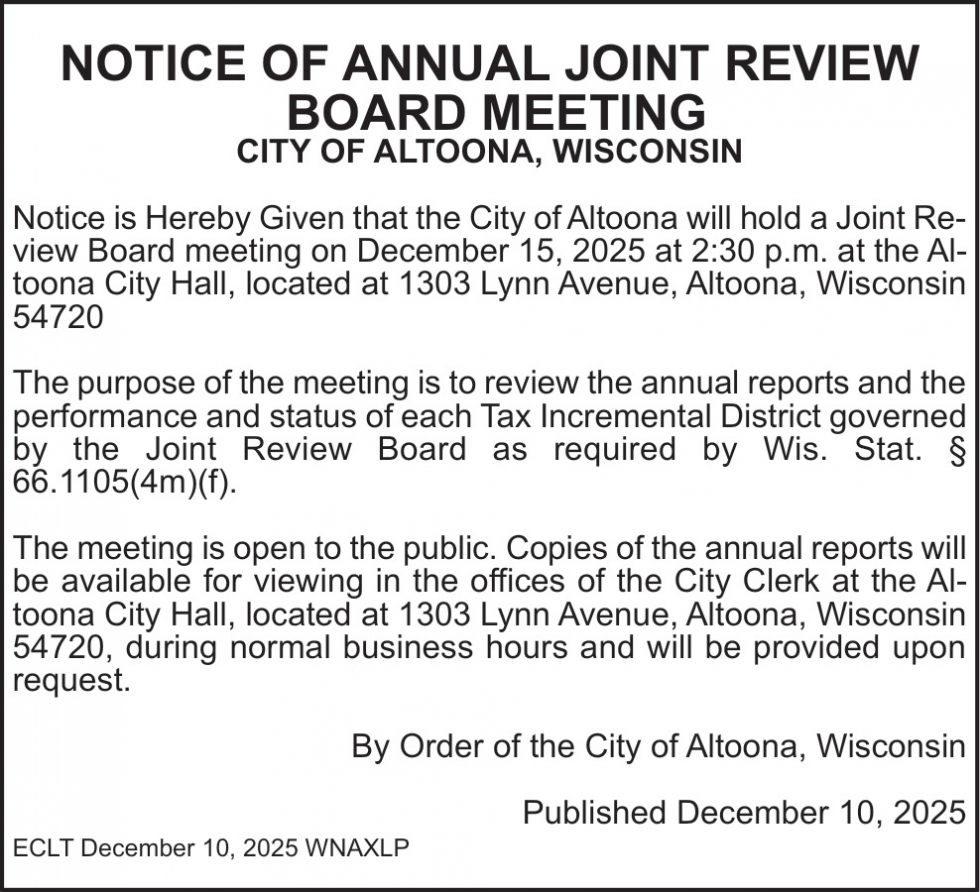 Public Notices in Altoona, WI