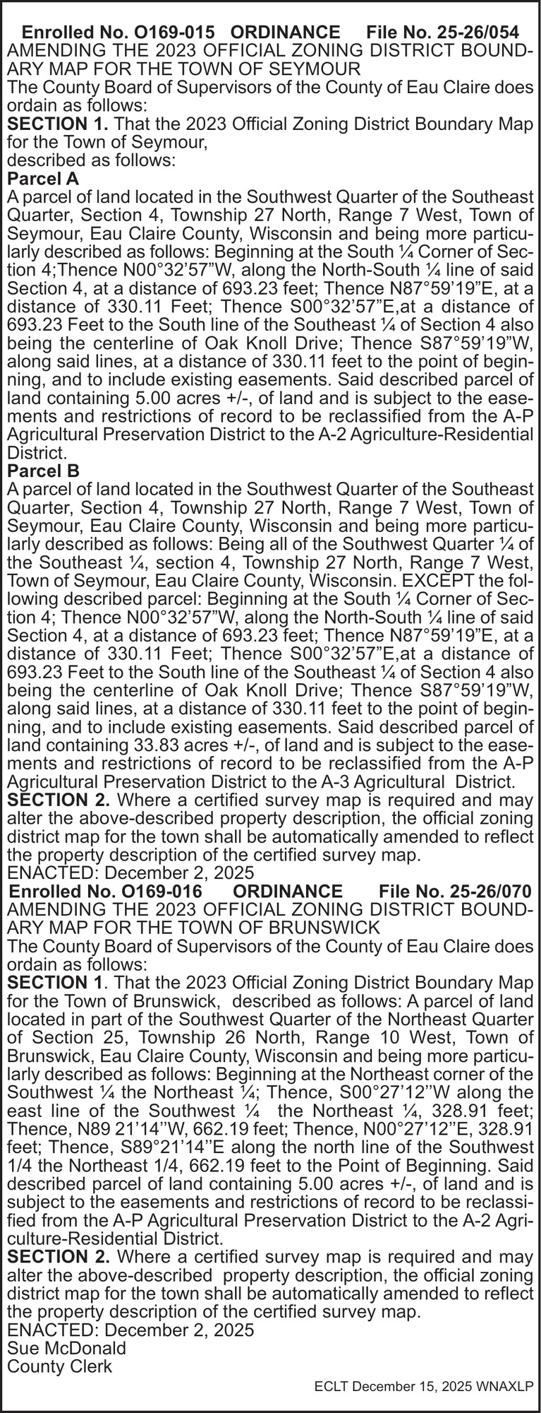 Dec 15, 2025. Eau Claire County Government Ads from Leader-Telegram