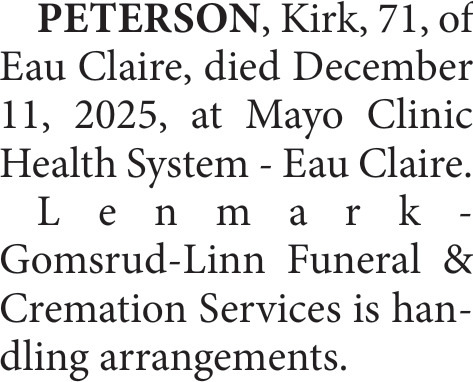 Dec 16, 2025. Lenmark Gornsrud Linn Funeral and Cremation Services Ads from Leader-Telegram