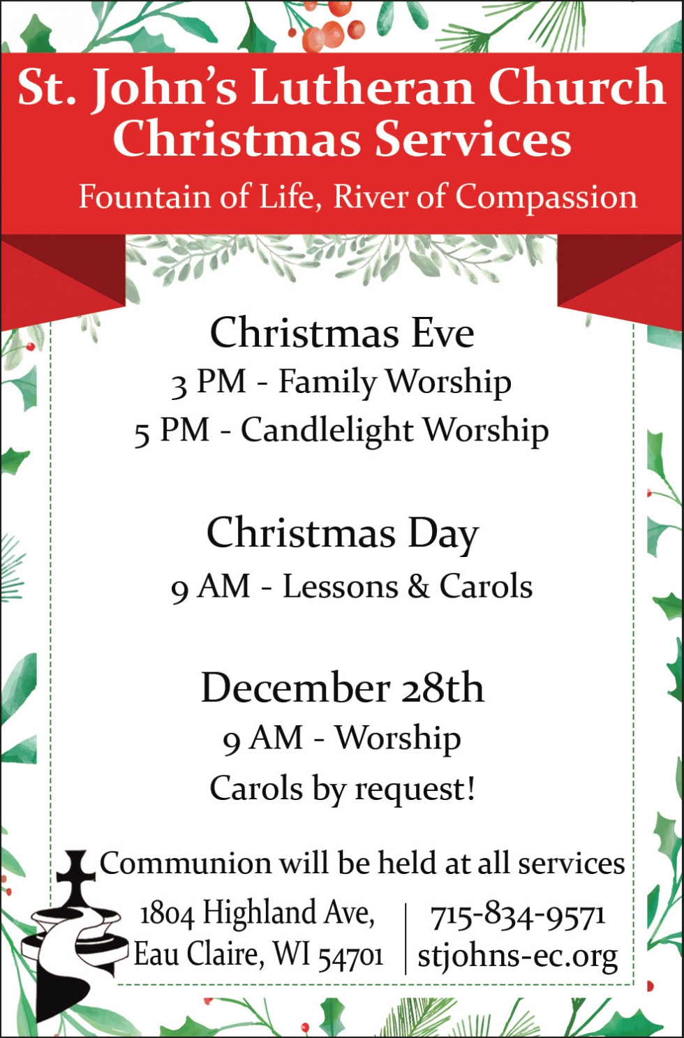 Dec 17, 2025. St. John's Lutheran Church Church Ads from Leader-Telegram
