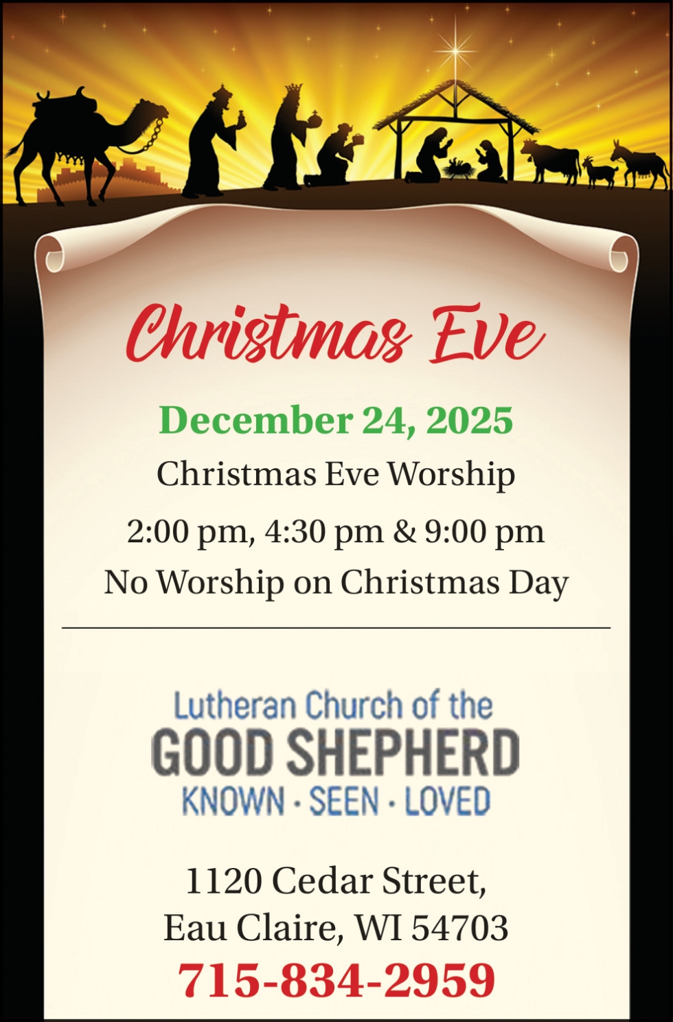 Dec 17, 2025. Lutheran Church of the Good Shepherd Church Ads from Leader-Telegram