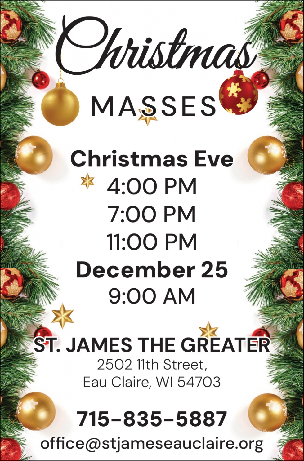 Dec 17, 2025. St James the Greater Catholic Church Church Ads from Leader-Telegram