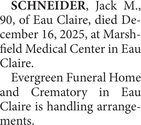 Dec 18, 2025. Evergreen Funeral Home and Crematoty Funeral and Cremation Services Ads from Leader-Telegram