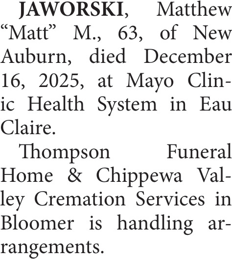 Dec 19, 2025. Thompson Funeral Home & Chippewa Valley Cremation Services - Bloomer Funeral and Cremation Services Ads from Leader-Telegram