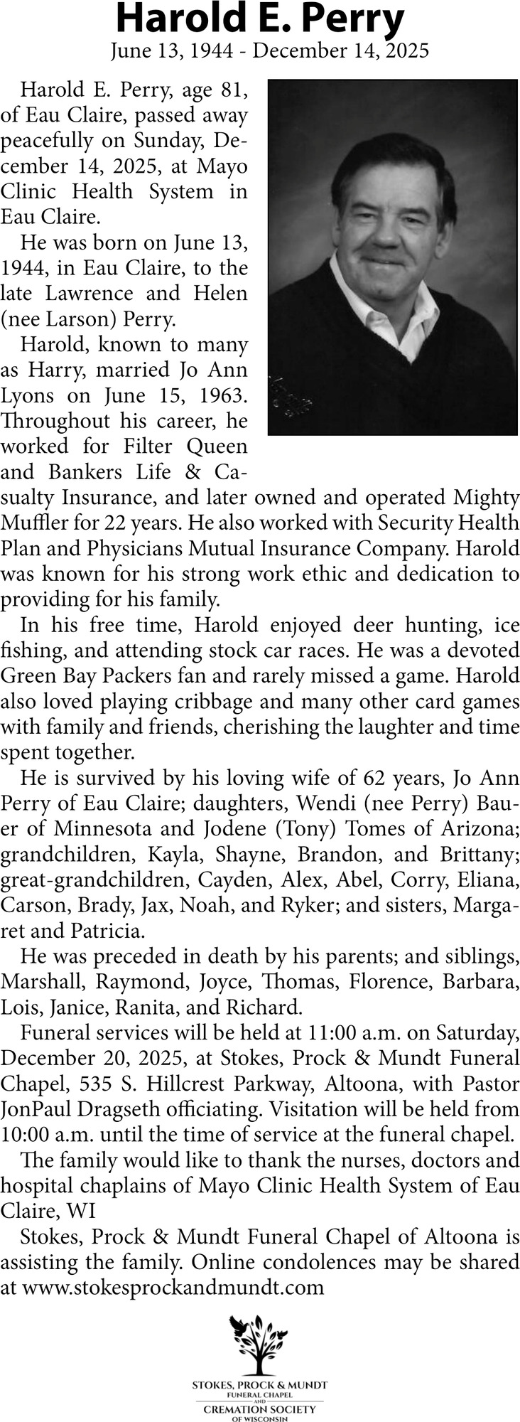 Dec 19, 2025. Stokes Prock & Mundt Funeral Chapel Funeral and Cremation Services Ads from Leader-Telegram