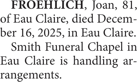 Dec 19, 2025. Smith Funeral Chapel and Crematory Funeral and Cremation Services Ads from Leader-Telegram
