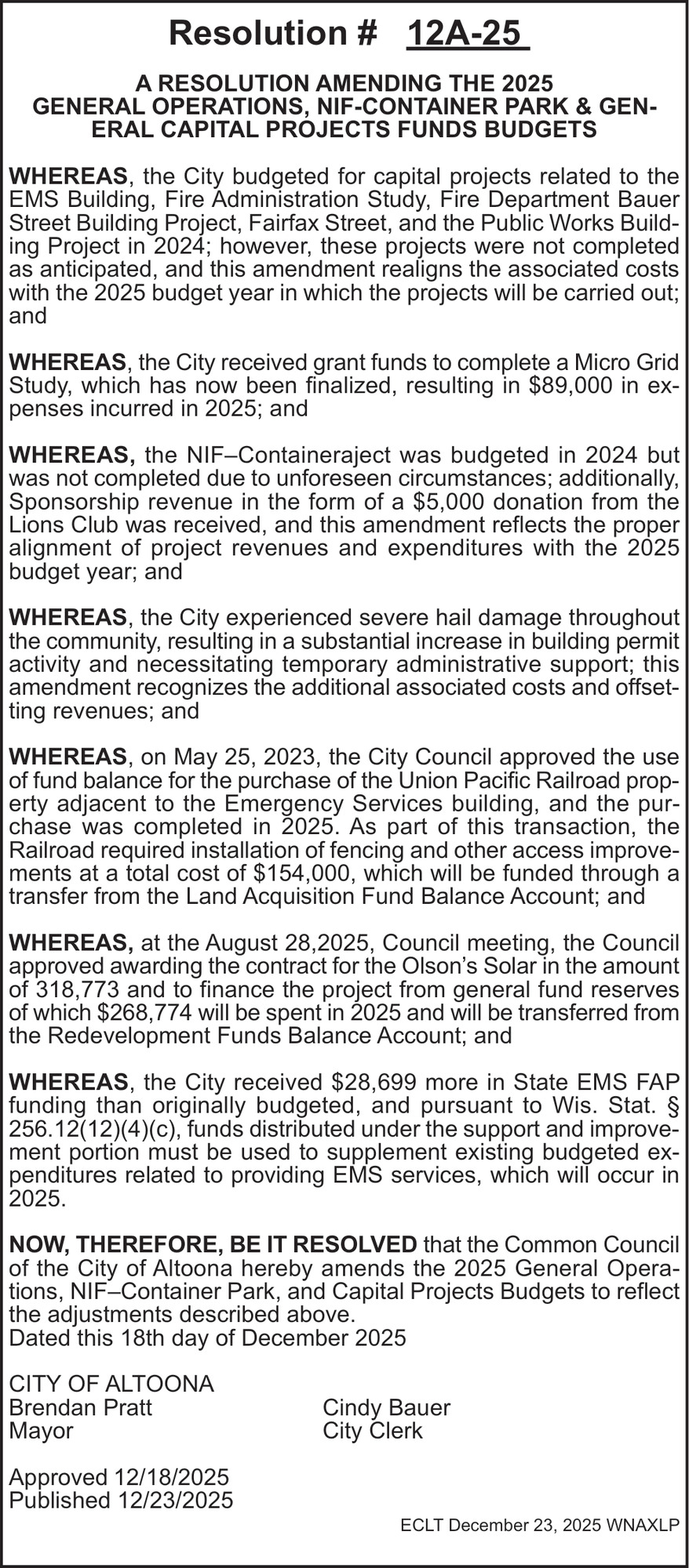 Dec 23, 2025. The City of Altoona Notice Ads from Leader-Telegram
