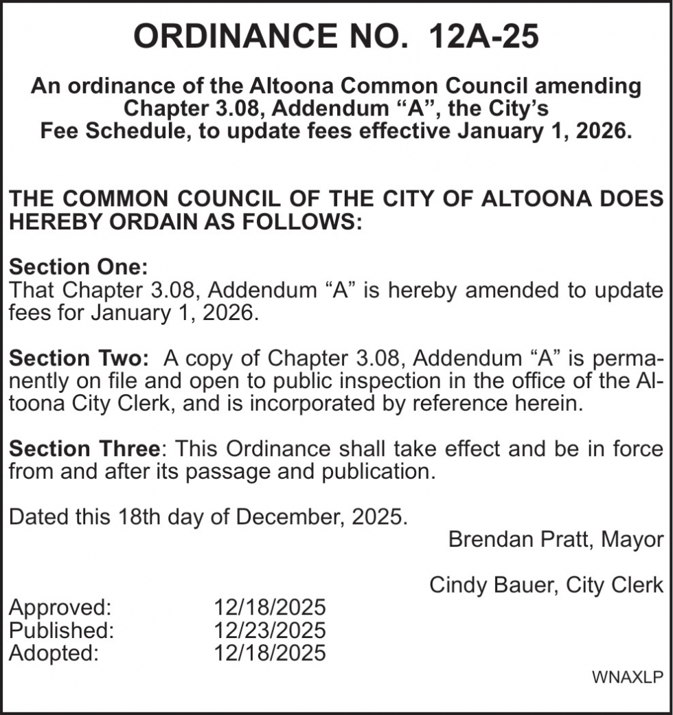 Dec 23, 2025. The City of Altoona Notice Ads from Leader-Telegram