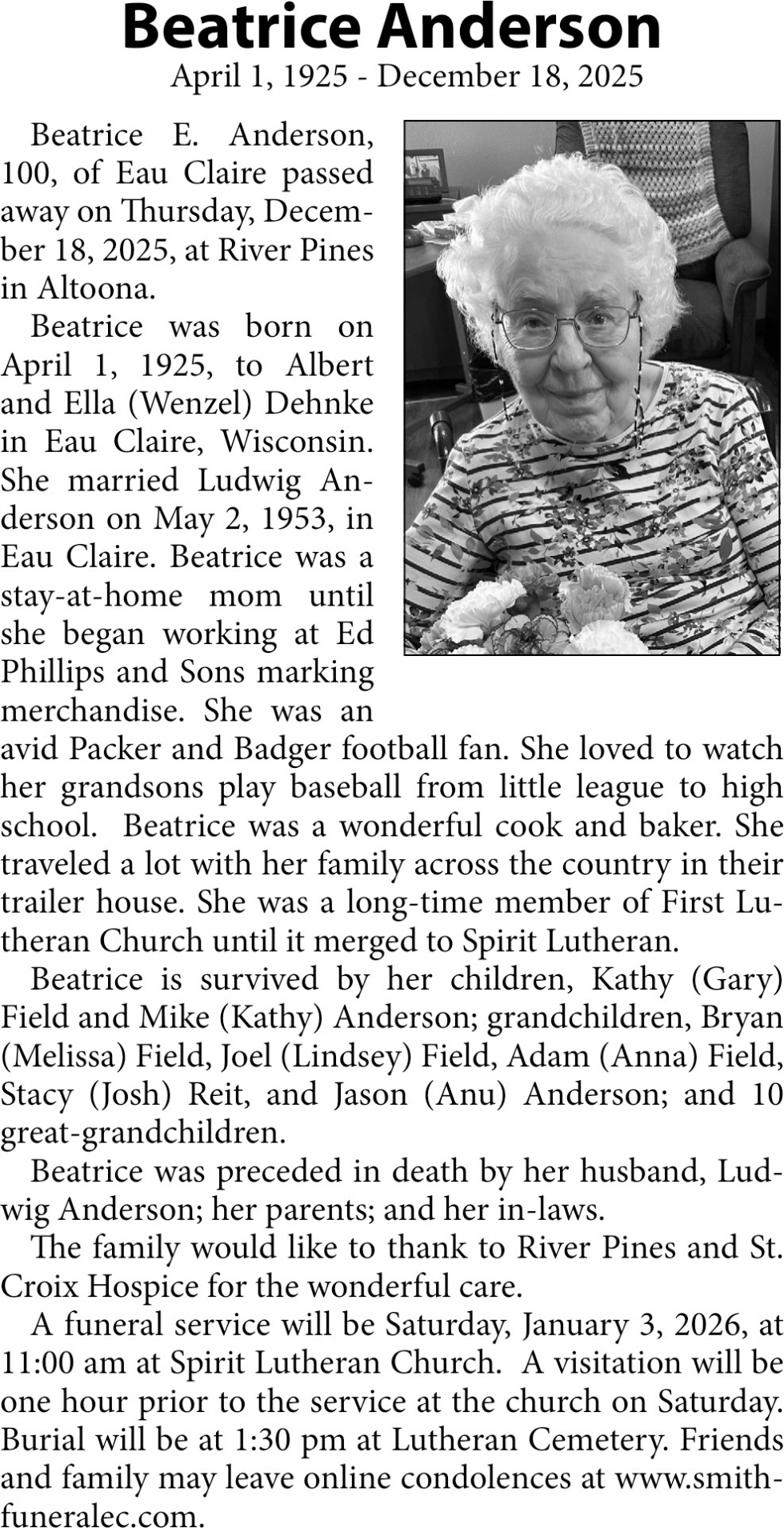 Dec 23, 2025. Smith Funeral Chapel and Crematory Obituaries Ads from Leader-Telegram