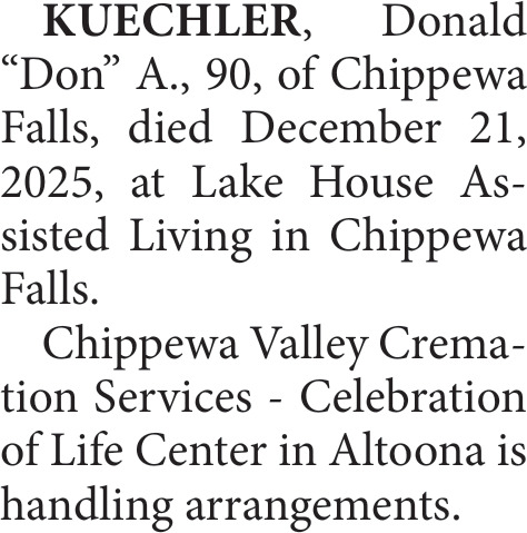 Dec 24, 2025. Chippewa Valley Cremation Services Obituaries Ads from Leader-Telegram