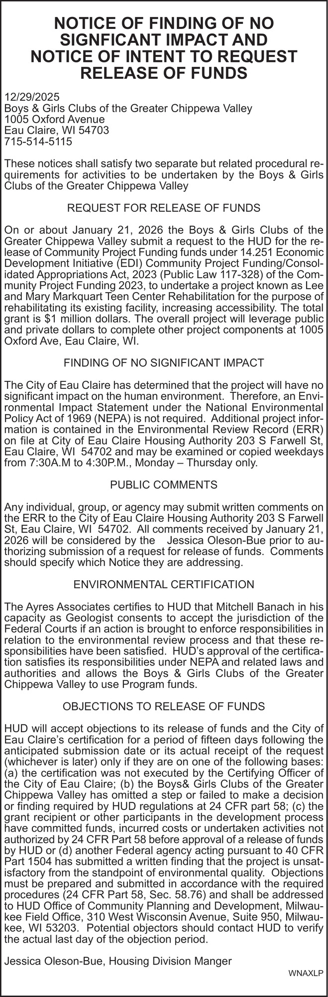 Dec 29, 2025. Boys & Girls Club of The Chippewa Valley Notice Ads from Leader-Telegram