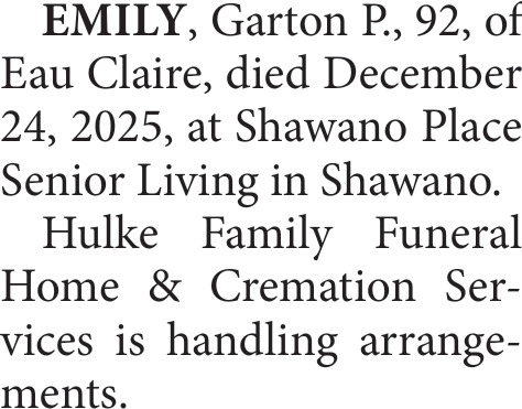 Obituary in Eau Claire, Wisconsin