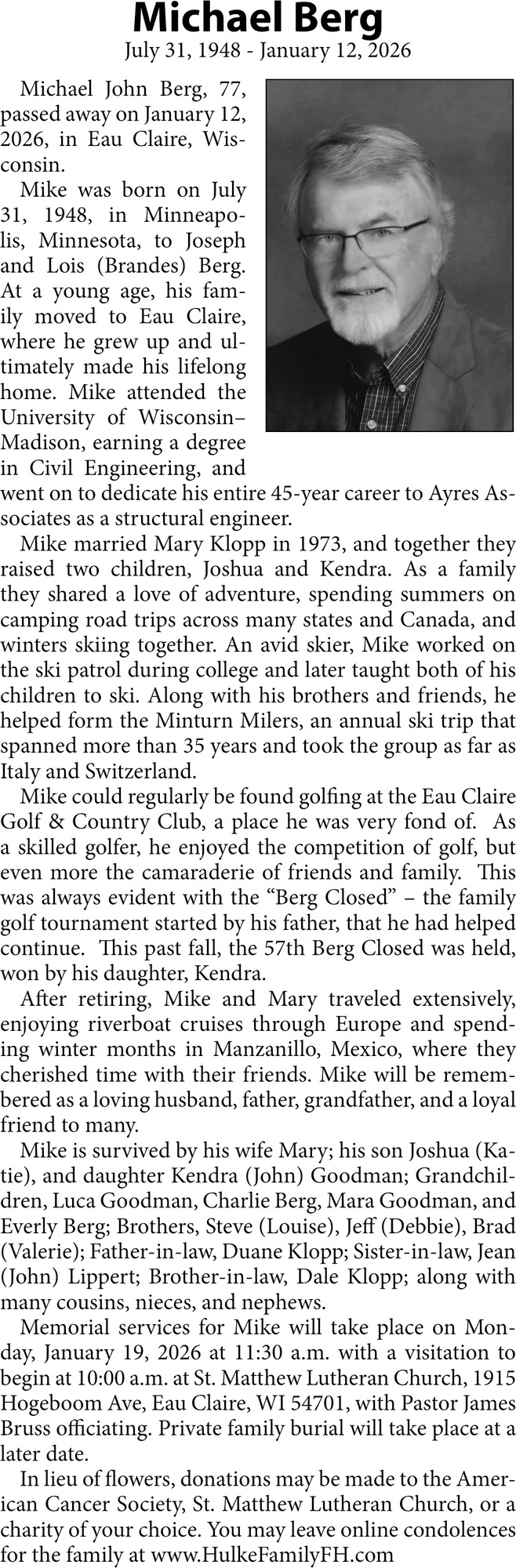 Obituary in Eau Claire, Wisconsin