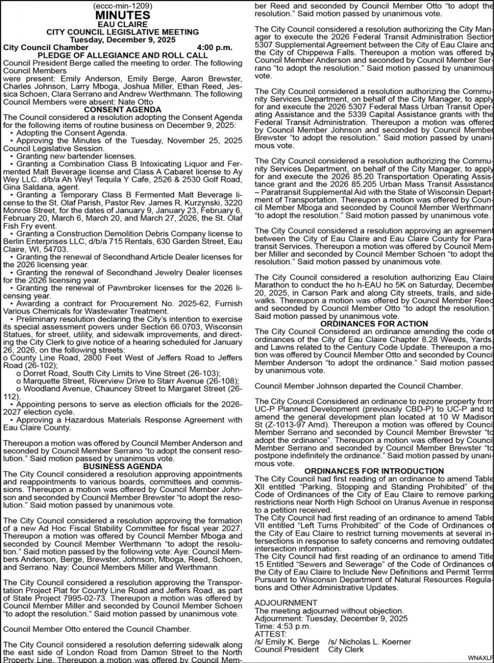 Public Notices in Eau Claire, WI