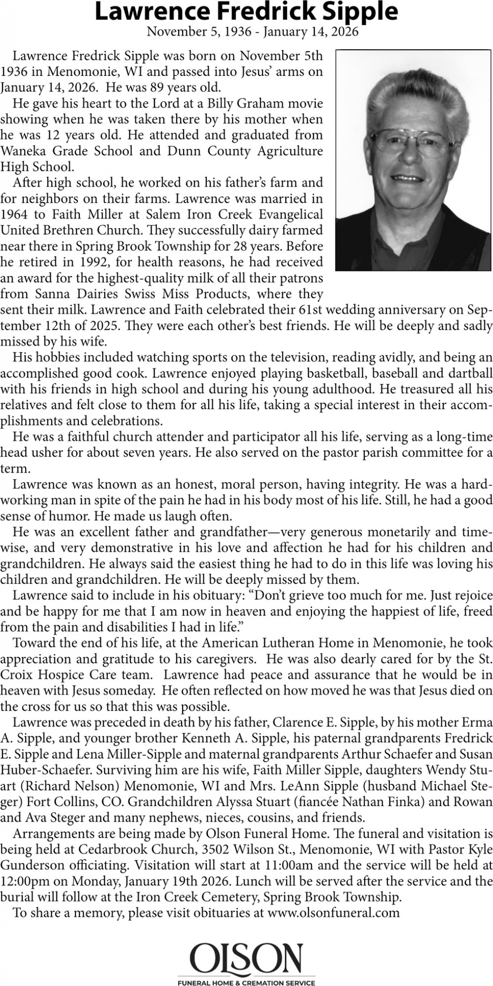 Obituary in Eau Claire, Wisconsin