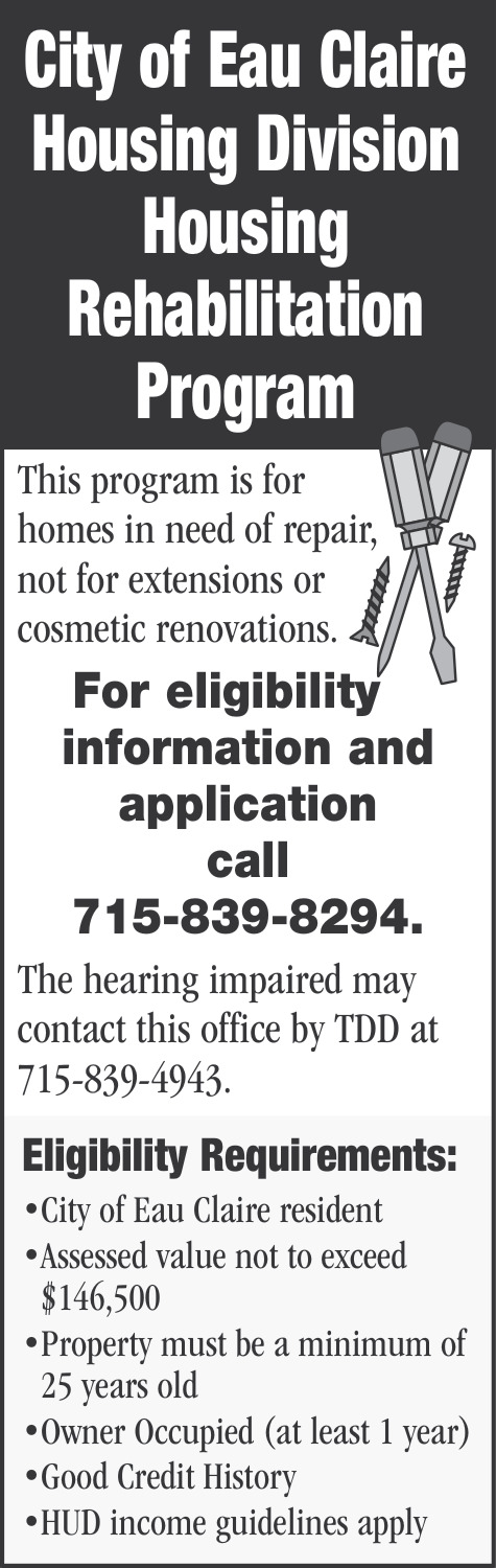 Jan 29, 2026. City of Eau Claire Housing Division Notice Ads from Leader-Telegram