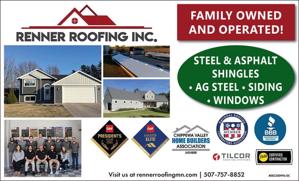 Ads for Renner Roofing Inc. in Red Wing, MN