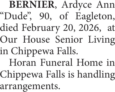 Feb 24, 2026. Obituaries Obituaries Ads from Leader-Telegram
