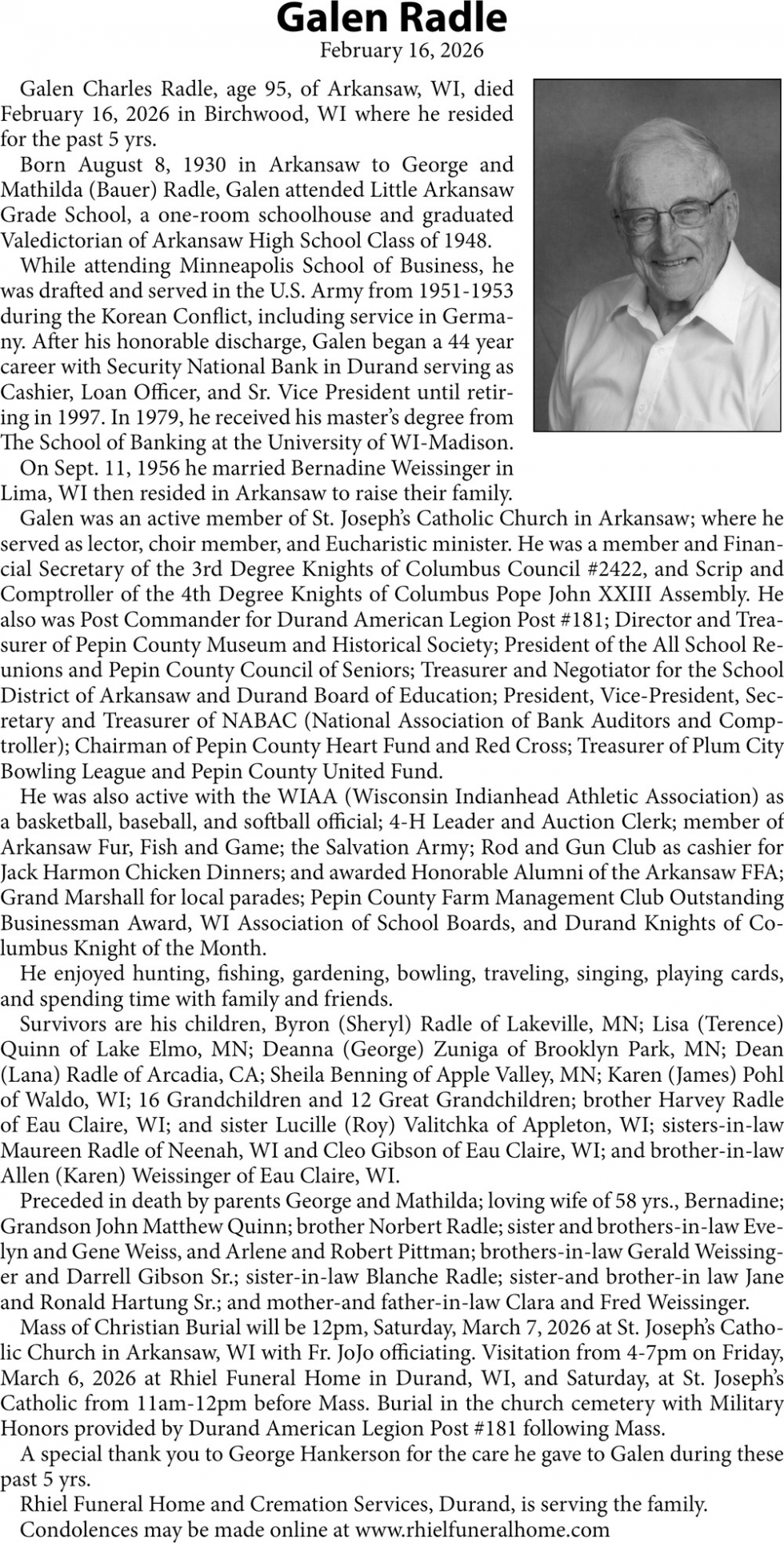 Feb 27, 2026. Obituaries Obituaries Ads from Leader-Telegram