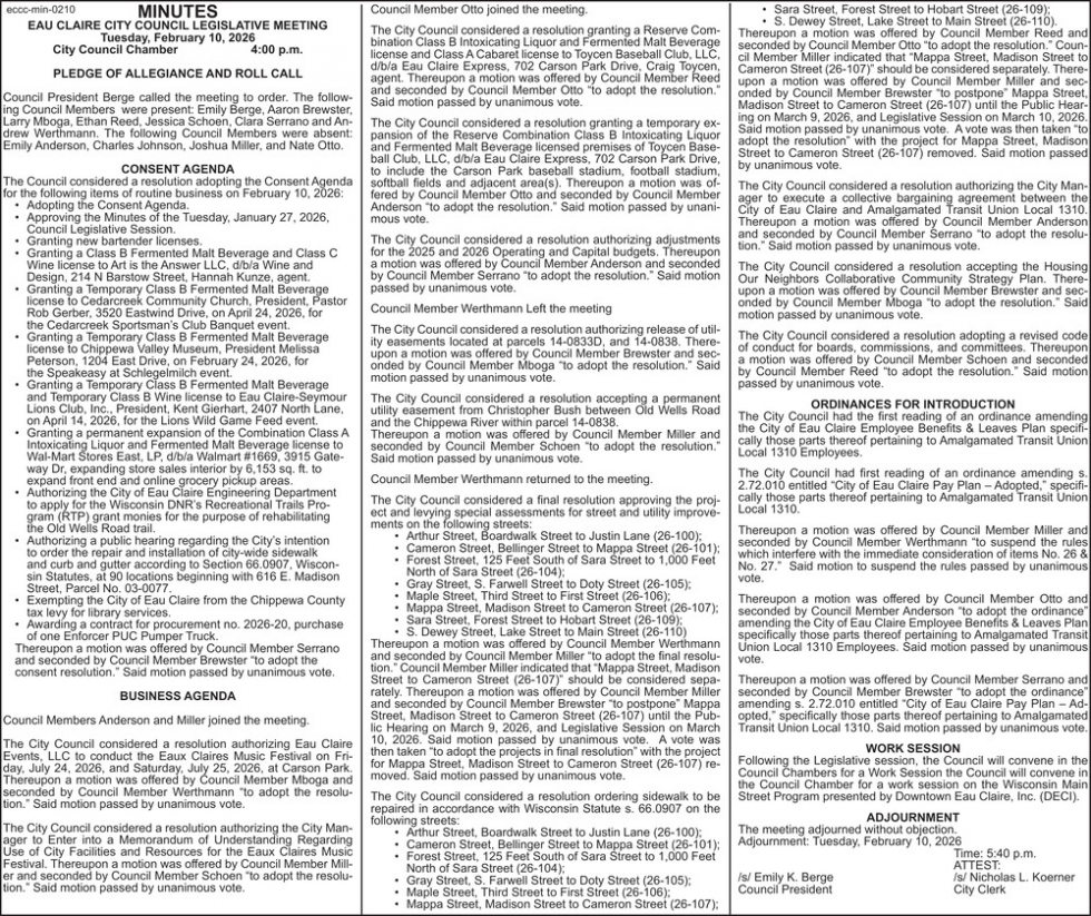 Mar 02, 2026. City of Eau Claire Notice Ads from Leader-Telegram