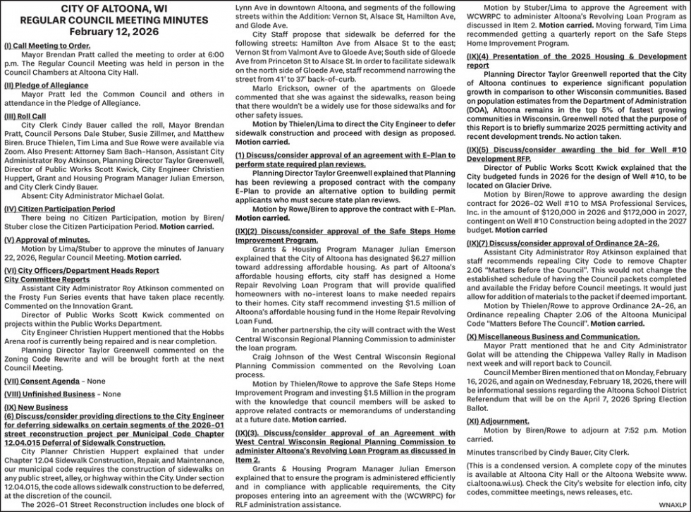 Mar 05, 2026. The City of Altoona Notice Ads from Leader-Telegram