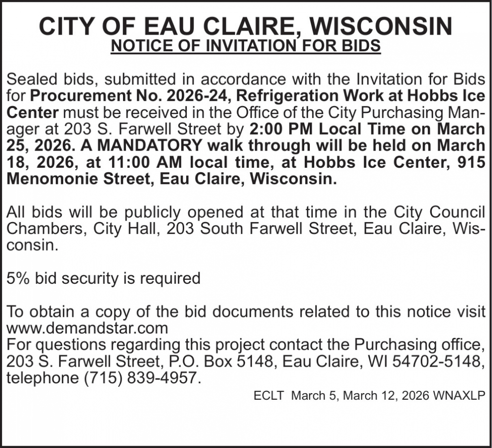 Mar 05, 2026. City of Eau Claire Notice Ads from Leader-Telegram